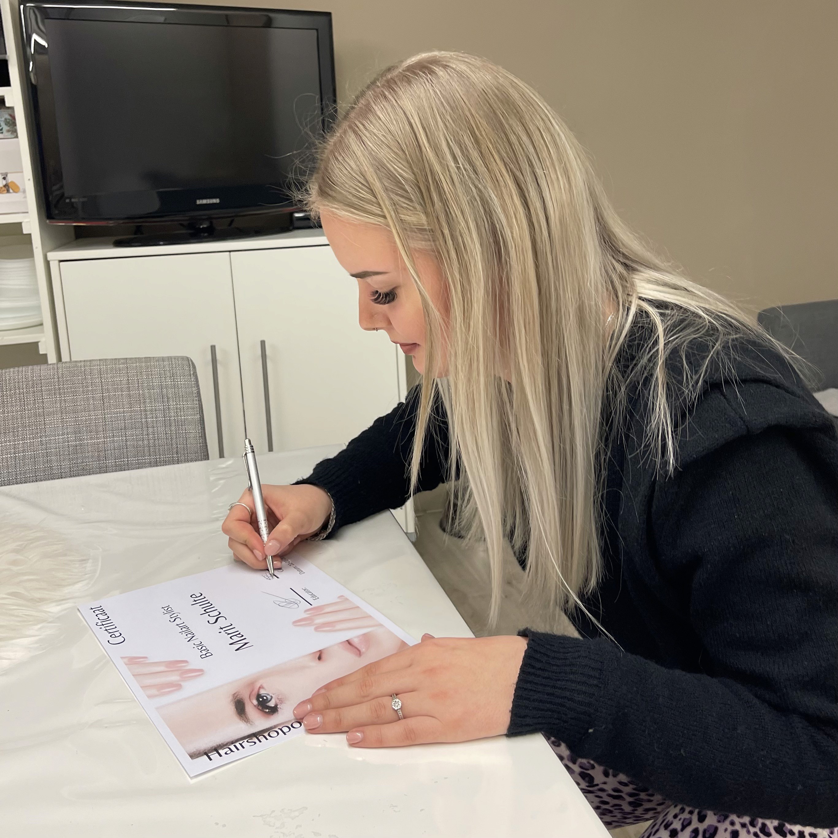 In begin 2021 zette ik mijn eerste stappen in de beauty wereld door te oefenen met gelpolish bij mijzelf en vriendinnen. Al snel besloot ik dit serieuzer aan te pakken en volgde ik mijn eerste nagelcursus. Op 1 september 2021 had ik mijn eerste les en oefende ik eindeloos op vrienden en familie, in een bijkeuken die we hadden omgetoverd tot een kleine salon. In oktober 2021 mocht ik met trots zeggen dat ik geslaagd was voor mijn eerste nagelcursus.